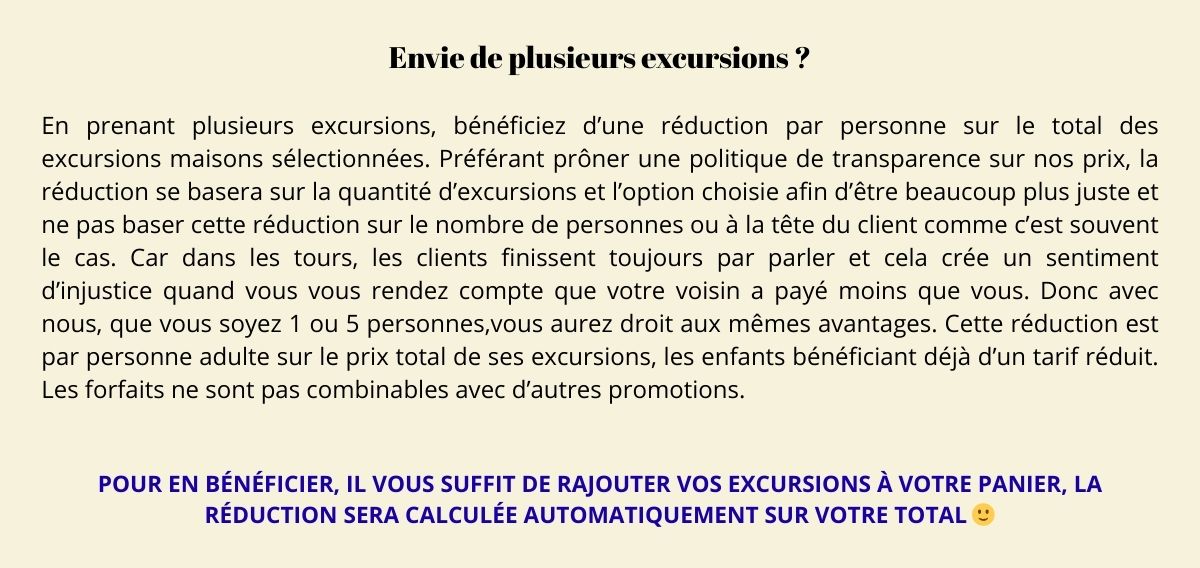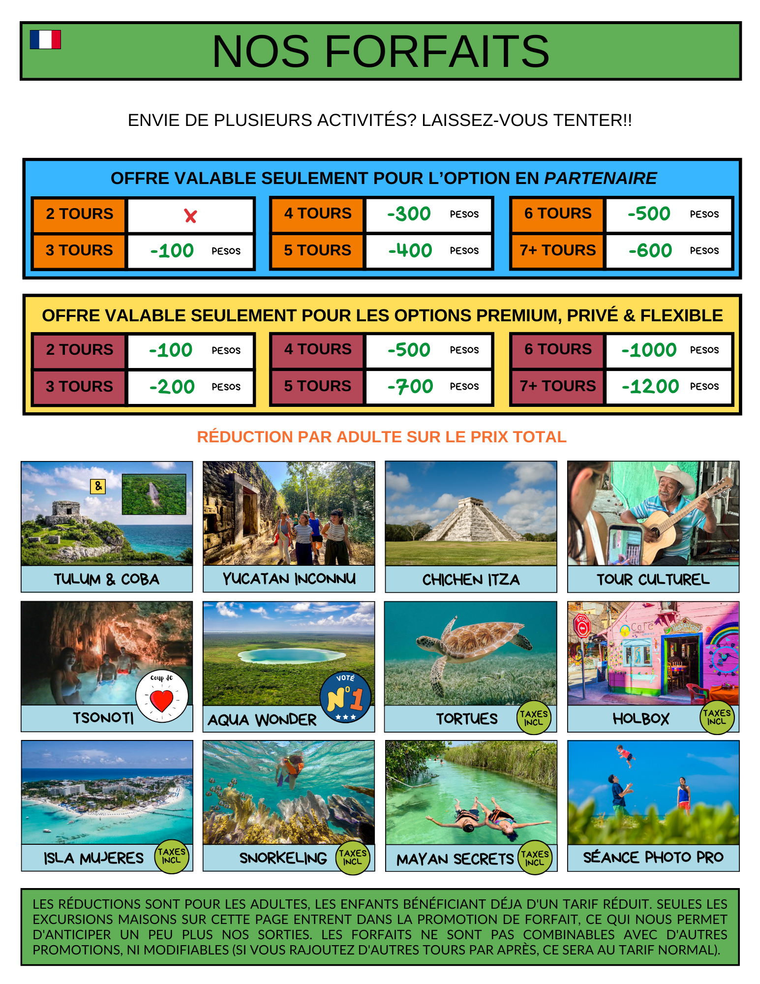 EXCELLENT Based on 1094 reviews Posted on sabri44Verified A faire absolument Bonjour , des superbes excursions proposées par del mundo, les cenotes étaient magnifiques 🥰🥰et incroyables, une vraie belle découverte avec une guide pétillante et une bonne énergie 😝merci Marion Nous avons également fait chichen itza , une journée magnifique avec de belles ruines mayas à voir 😊le Yucatan inconnu aussi avec une balade en pleine jungle juste le top et une baignade dans le golf du Mexique 🥰avec Marion aussi 🥰et nous avons nagés avec les tortues 🥰et les raies 😊sublime expérience à ne surtout pas rater si vous venez à playa del Carmen . Des endroits magnifiques 🥰merci beaucoup à ce tour operator exclusivement français 🥰🥰Posted on Sherpa19090269955Verified Wow Wow deux super belles journées ! Les centres avec Marion et Chichén Itzá avec Cécilia et Ruswel comme chauffeur! Que de souvenirs impérissables! MerciPosted on AdelineVerified Super !! N’hésitez pas, les excursions sont superbes !Nous avons fait cenotes et tortues, Holbox, Tulum et Coba et enfin tsonoti ! Organisation top, on arrive toujours avant la foule, c’était parfait ! Et ce sont des petits groupes à chaque fois entre 6 et 10 personnes. Un grand merci à Marion, notre guide, elle a été incroyable !Posted on tortue3Verified Agence "del Mundo Tours " à Playa del Carmen au top Avons passé une journée magnifique avec Cécilia comme guide qui est fabuleuse tant par ses connaissances de la culture maya que par sa gentillesse. Après Chichen Itza, nous avons eu un repas typique dans une famille maya authentique et avons pu découvrir leur quotidien. Expérience enrichissante...Et avant notre retour, nous sommes allés nous rafraîchir dans une cénote. Belle longue journée avec des souvenirs impérissables. Le van est bien aménagé et confortable et nous avons à boire et des biscuits si nous le souhaitons. Nous recommandons l'agence "del mundo Tours " à 100% pour les excursions. Explications claires et détaillées et personnes très serviables. Merci à eux.Posted on EmmaVerified Genialllle Nous avons effectué 2 excursions avec del mundo Tours superbe ! La première était l’île de holbox avec notre superbe guide Marion ! C’était géniale ,Notre deuxième excursion était chichen itza avec notre guide petrus , un homme passionné débordant de connaissance et de savoir ! Une excursion très enrichissante , nous avons également rencontré une famille maya avant de voir une belle cenotte ! Merci également au jeune stagiaire Dylan et nous lui souhaitons le meilleur pour son stage et ses études ! Merci pour tous .Emma Enzo Théo et Anaïs !Posted on hayette RVerified Excursion incroyable Nous avons passé une super matinée. Très enrichissant culturellement et humainement . Je vous le conseille merci à notre super guide qui était d’une gentillesse et qui prends le temps (c’est rare dans les excursions) merci ☺️Posted on Davidus2411Verified En toute confiance Venus au Mexique sur la période Dia de los muertos, nous avons profité que Del lundi tours proposait sa visite culturelle, agrémentée d une visite éducative cimetière et de la place accueillant le concours d hôtels.Une belle découverte, tant culturelle qu humaine (Marion est une jeune guide charmante, pleine d humour et de culture)Merci bcpPosted on Sarah GVerified Exceptionnel Visite exceptionnelle super groupe super ambiance et Marion notre guide hors paire.Del mundo tours une agence aux petits soins vivement conseilléePosted on Camille CVerified Chichen Itza & Isla mujeres Expérience grandiose, unique, qui restera inoubliable. Une journée faite de détails et d’attention, une tonne de chose à apprendre et à se remémorer, merci à Marion pour tout le temps passé, pour tes explications et ta gentillesse ! Merci à Charly pour sa conduite et sa disponibilité, merci d’avoir rendu ce voyage exceptionnel !Posted on Julie sVerified Nous recommandons 🥰 Nous avons réservé l’excursion coup de cœur “tsonoti” (visite des cenotes ). Nous avons passé une agréable journée 🥰. Nous remercions flavie pour nous avoir conseillé cette excursion et nous remercions Marion l’accompagnatrice pour cette journée magnifique, encore merci à del mundo tours